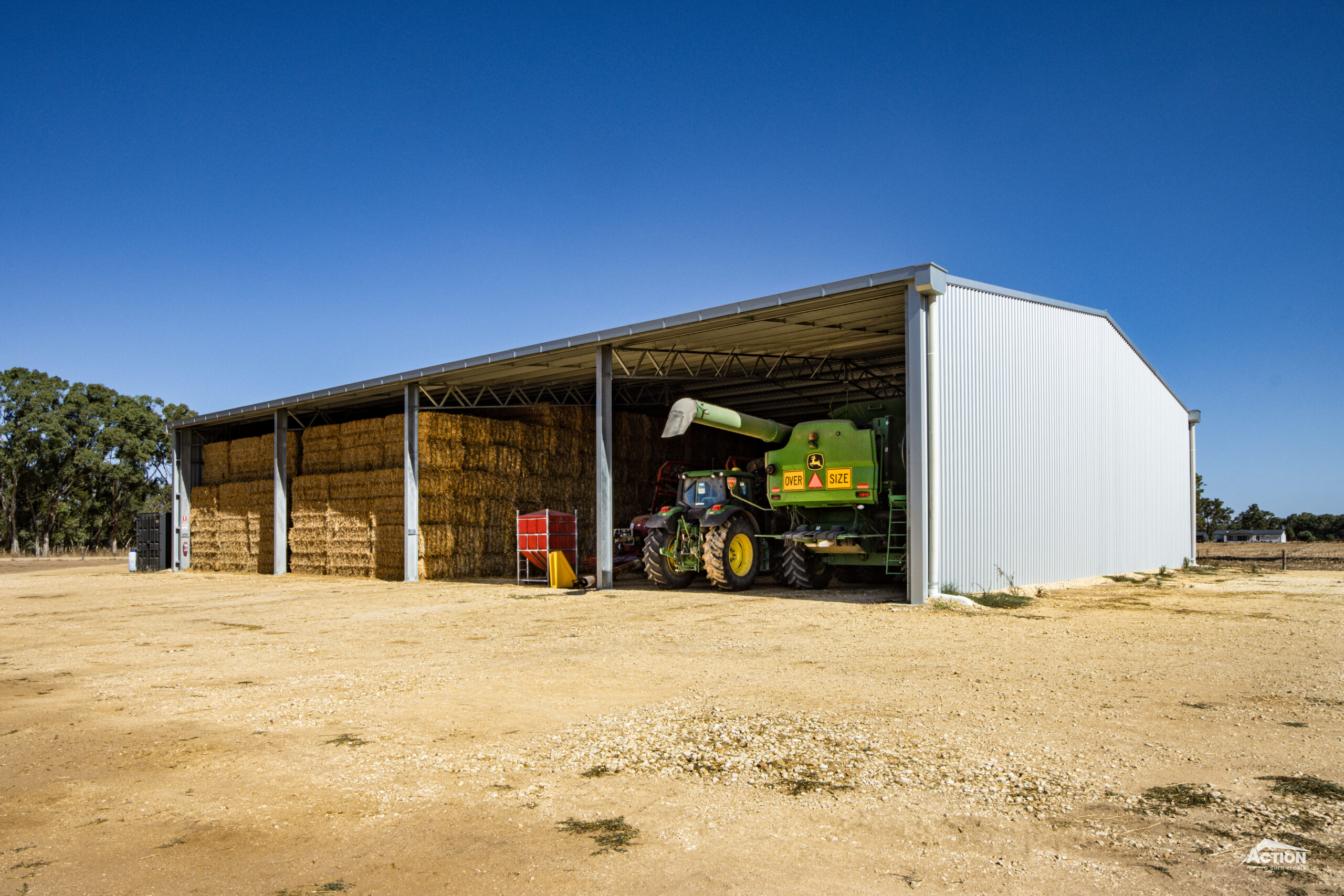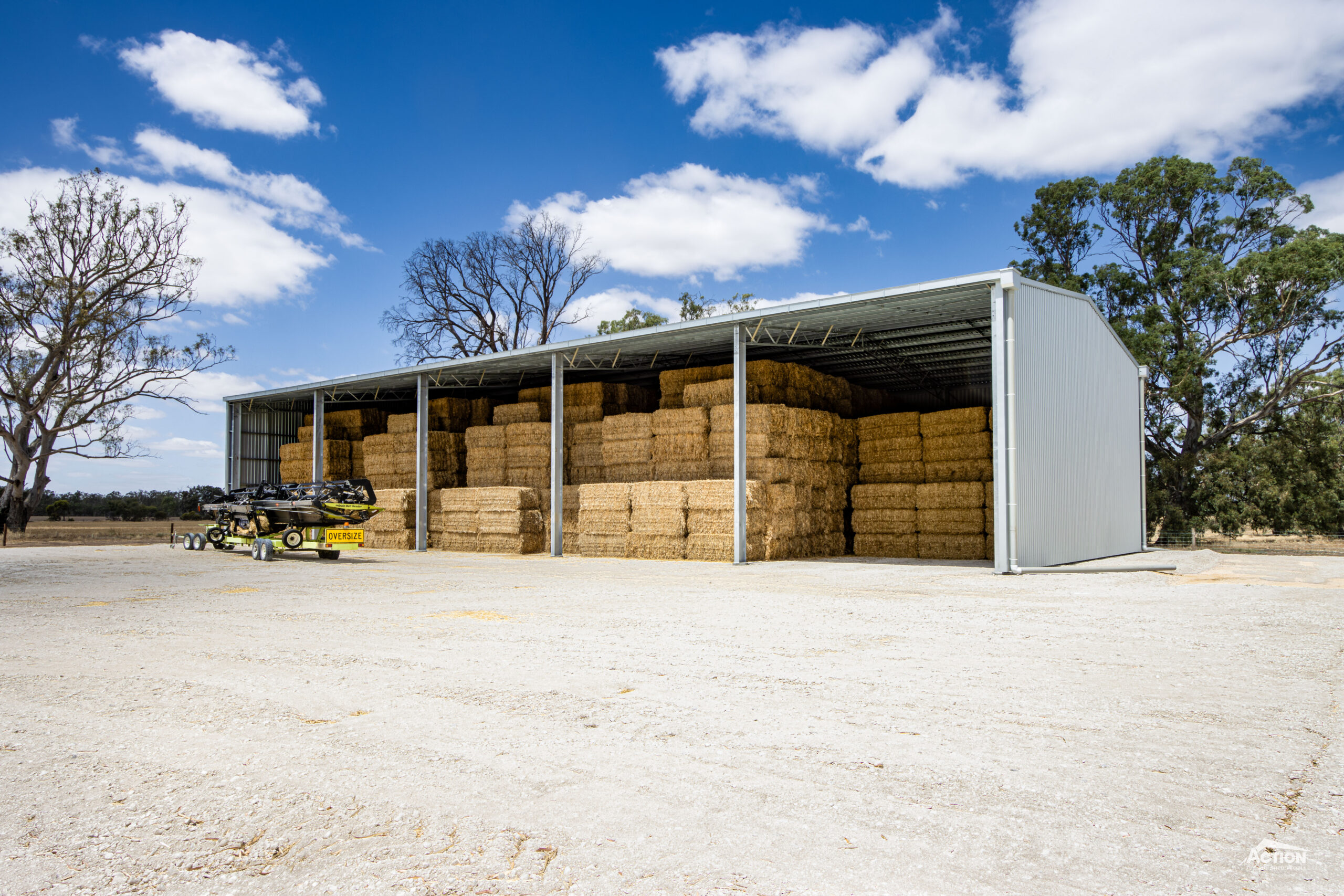 Action Steel hay sheds have a heavy-duty UB column and open web truss construction that uses all Australian steel materials and is fully hot-dip galvanised.